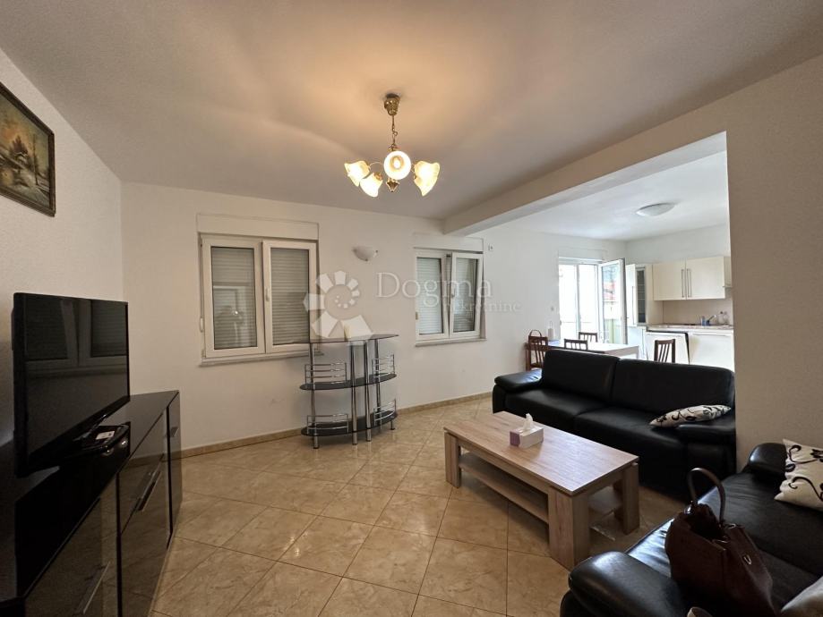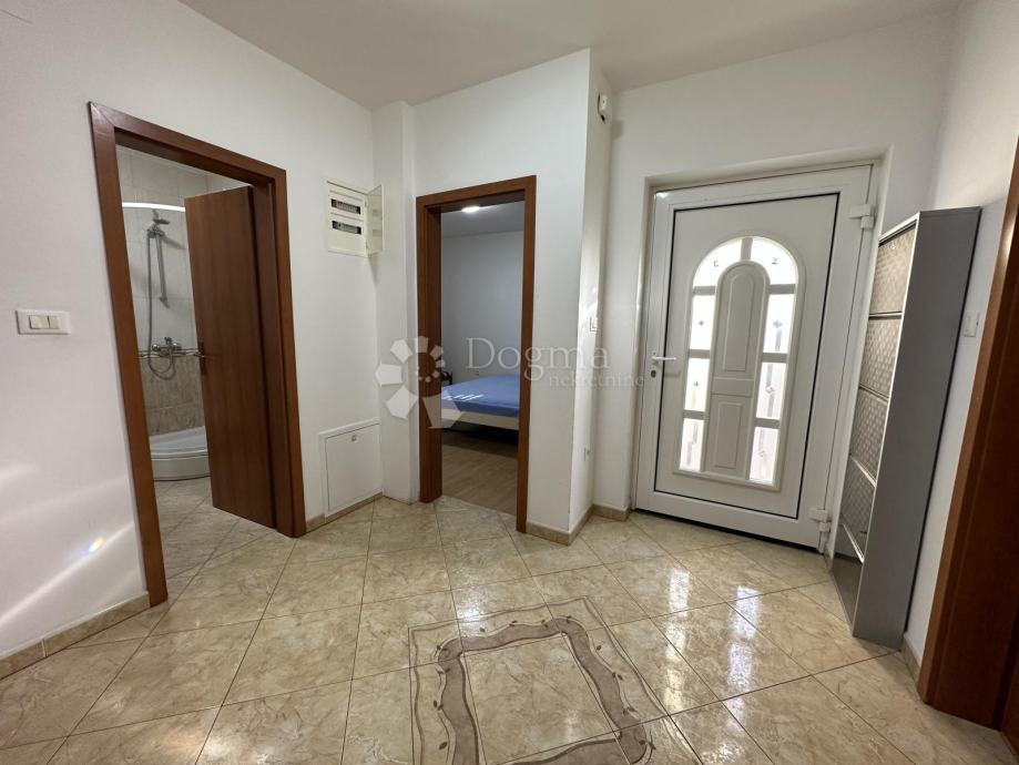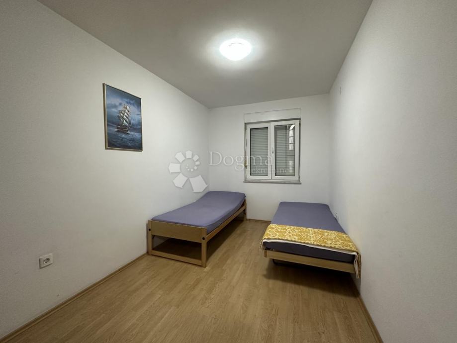 Prostor je površine 85m2. Sastoji se od: hodnika, zasebnog WC-a, kupaonice, 2 prostorije, te prostorije sa kuhinjom i izlaskom na balkon.