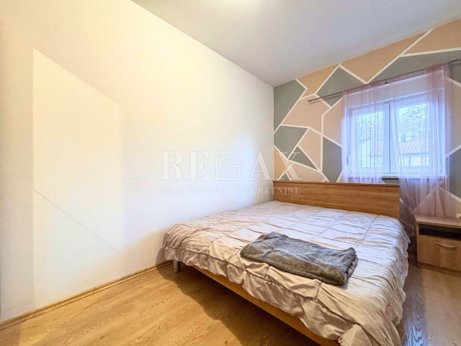 Stan se sastoji od kuhinje s blagovaonicom, dnevnog boravka, dvije spavaće sobe, hodnika i kupaonice. Potpuno je namješten i odmah useljiv, što ga čini idealnim rješenjem za stalno stanovanje. Uz stan dolazi i okućnica površine 17,5 m², koja nudi dodatni vanjski prostor za opuštanje ili praktičnu namjenu. Moguće ju je urediti kao mali vrt, postaviti vrtnu kućicu ili vanjski roštilj, što dodatno povećava vrijednost i atraktivnost ove nekretnine.