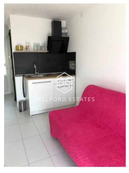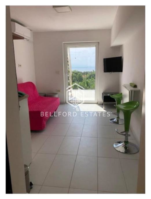 Garsonijera je kompletno namještena i ima terasu sa sjedećim prostorom za korištenje.