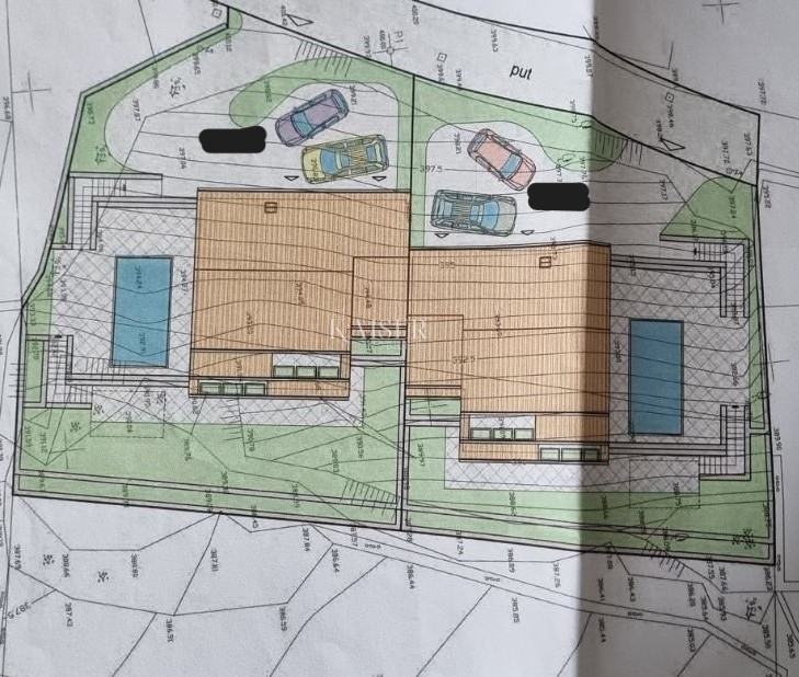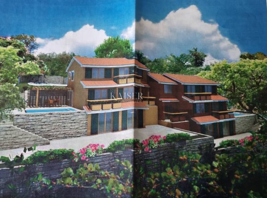 Konfiguracija zemljišta je u 2 terase i padu prema moru. Za zemljište je ishodovana lokacijska dozvola i potvrda glavnog projekta prema kojem je predviđena dvojna kuća bruto 2 puta po 246 m2 i 2 puta po 110 m2 tlocrtne površine i to suteren, prizemlje i kat. Projekt se može prilagoditi željama traženjem dopune gl. projekta. U blizini zemljišta nalazi se osnovna infrastruktura (struja, voda) potrebno je napraviti septik. S terena se pruža lijep pogled prema moru i Rijeci. Do prvih Opatijskih plaža nekretnina je udaljena 15 minuta vožnje autom. U okruženju je privatnih kuća i lijepih vila. Autobusna stanica je na 10 minuta pješice.