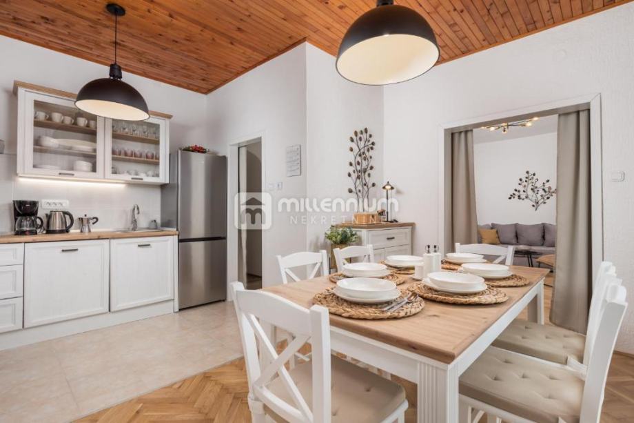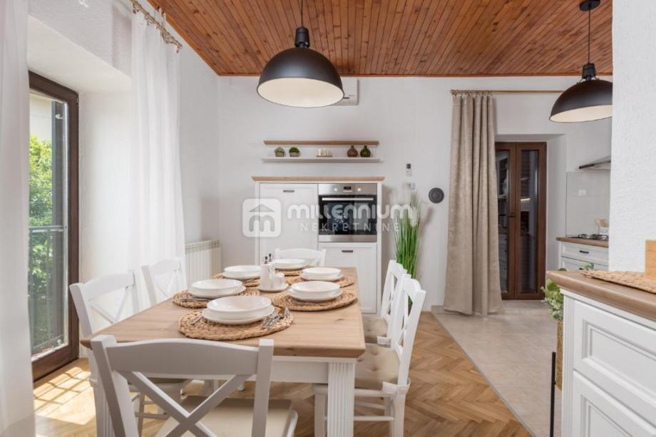 Okućnica je pažljivo uređena, s dovoljno prostora za opuštanje, dječju igru ili hortikulturno uređenje po vlastitim željama. Sama lokacija kuće nudi odličnu povezanost s Rijekom, Opatijom i ostalim dijelovima Kvarnera, a u neposrednoj blizini nalaze se svi važni sadržaji – trgovine, škole, vrtići i javni prijevoz.