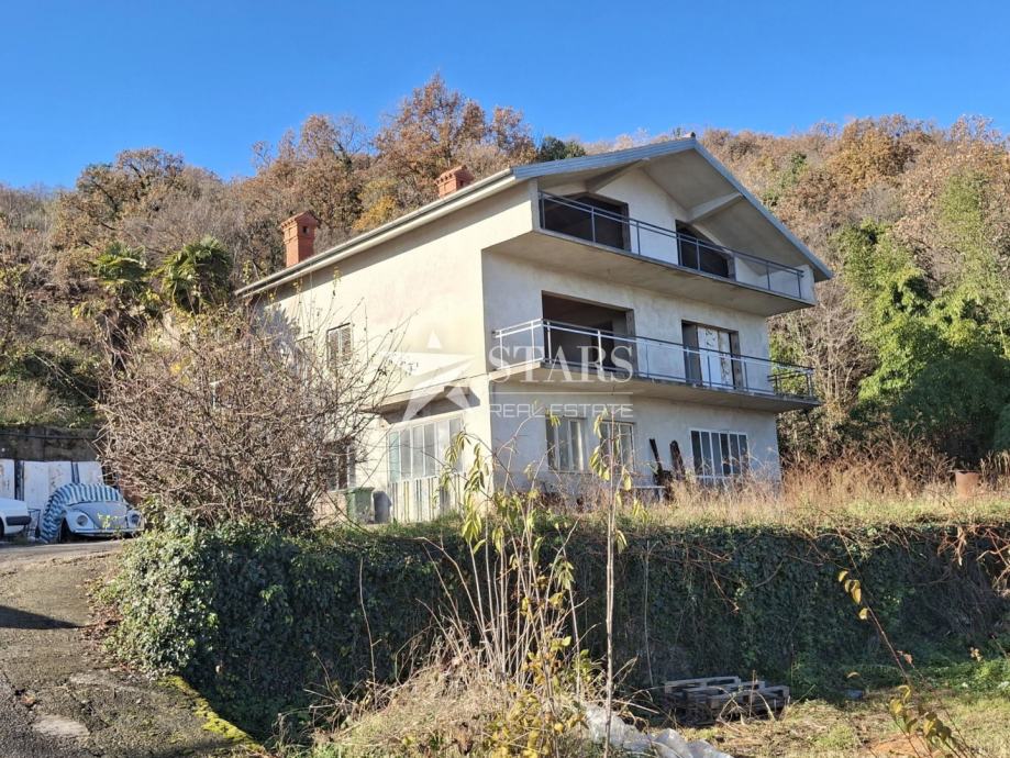 Na prodaju samostojeća nedovršena kuća s prekrasnim pogledom na Kvarner! Smještena na mirnoj lokaciji, svega 2 km od centra Matulja i 4 km od Opatije te mora i plaža.