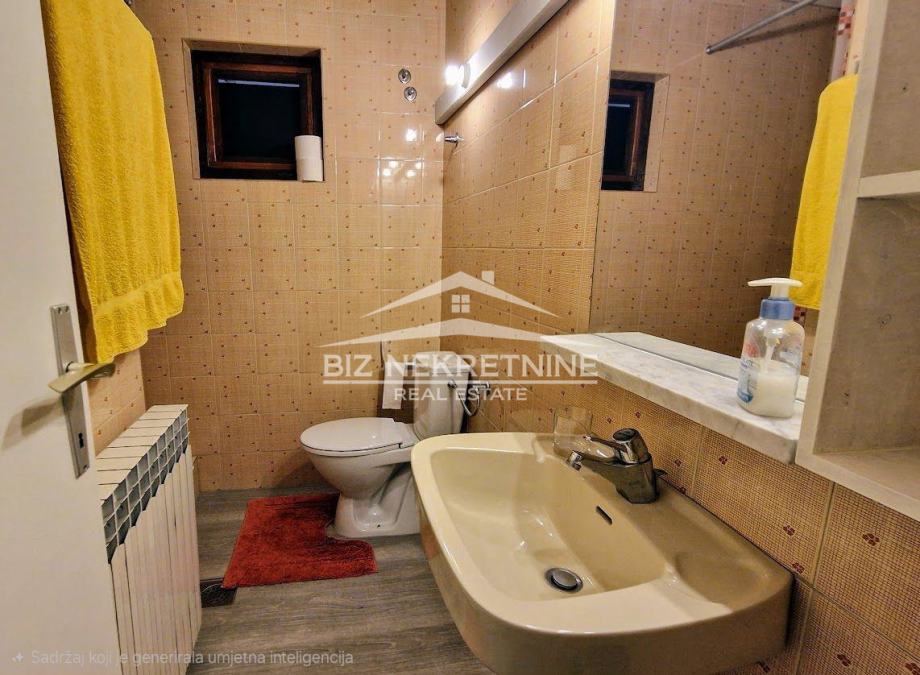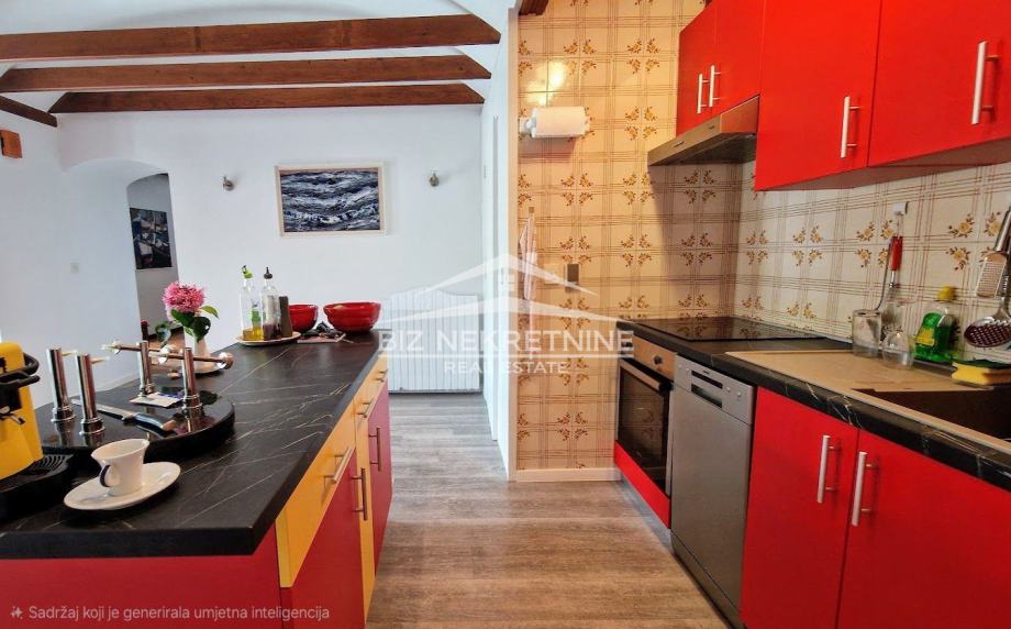 Prodaje se potpuno namješten, kvalitetna kuhinja rađena po mjeri s novom bijelom tehnikom.
