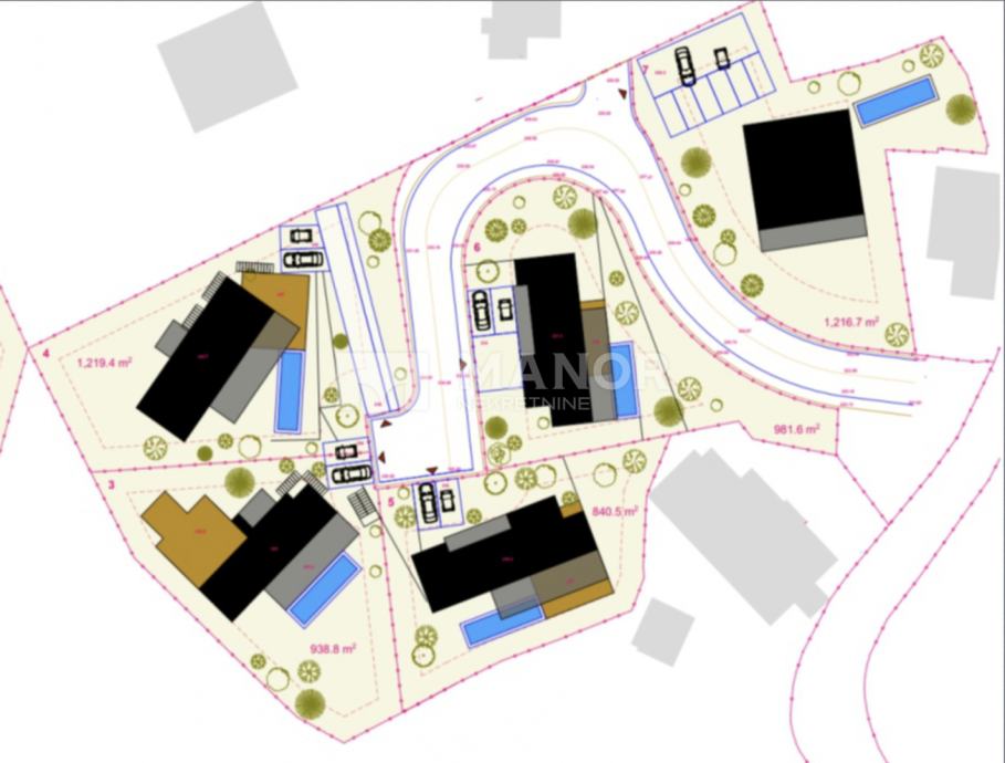 Manor predstavlja građevinsko zemljište nadomak Opatije površine 941 m2 s postojećim idejnim rješenjem