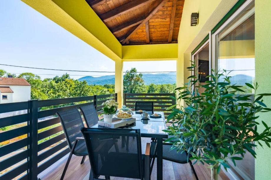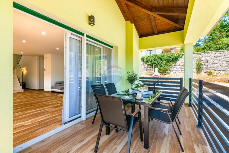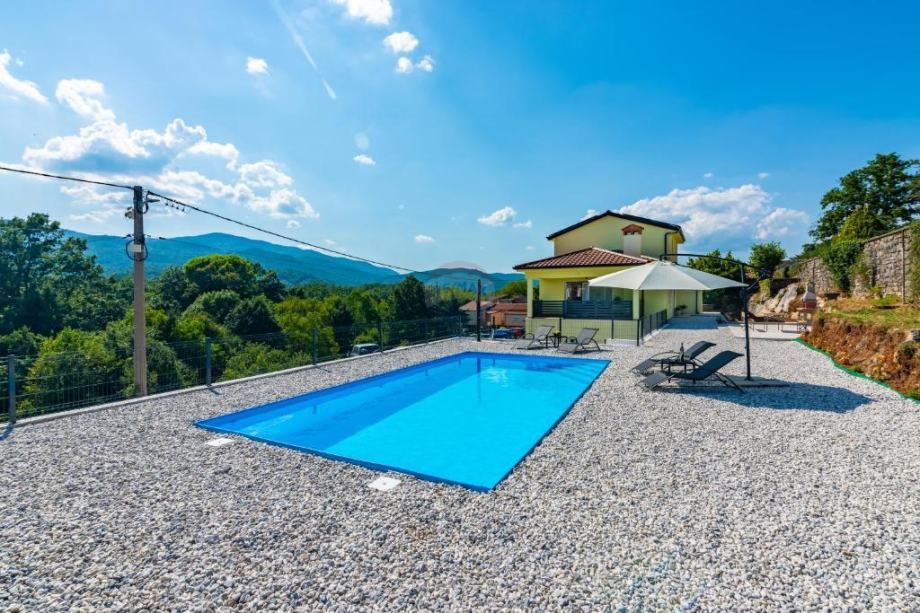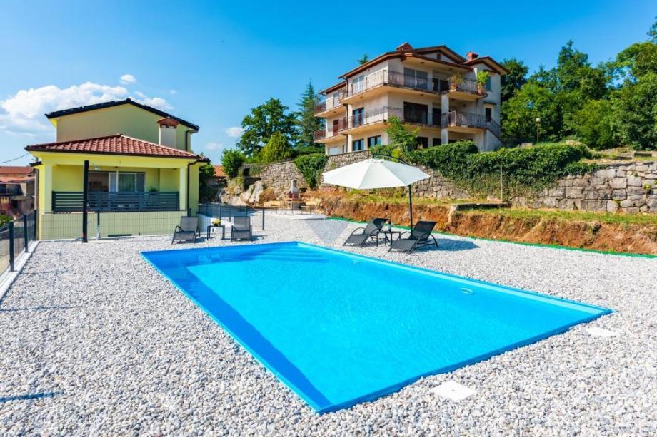Smještena je u mirnom okruženju s pogledom na šumu i zelenilo, a sastoji se od prizemlja, kata i sunčališta s bazenom.