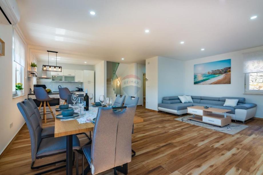 Kuća je opremljena solarnom elektranom tako da troškova struje gotovo da i nema, a grijanje je podno putem dizalica topline.