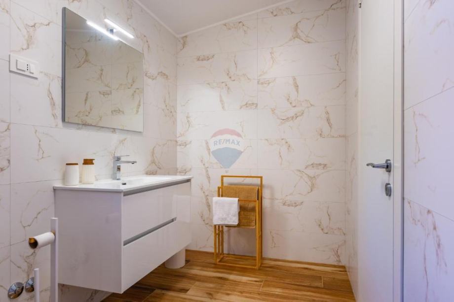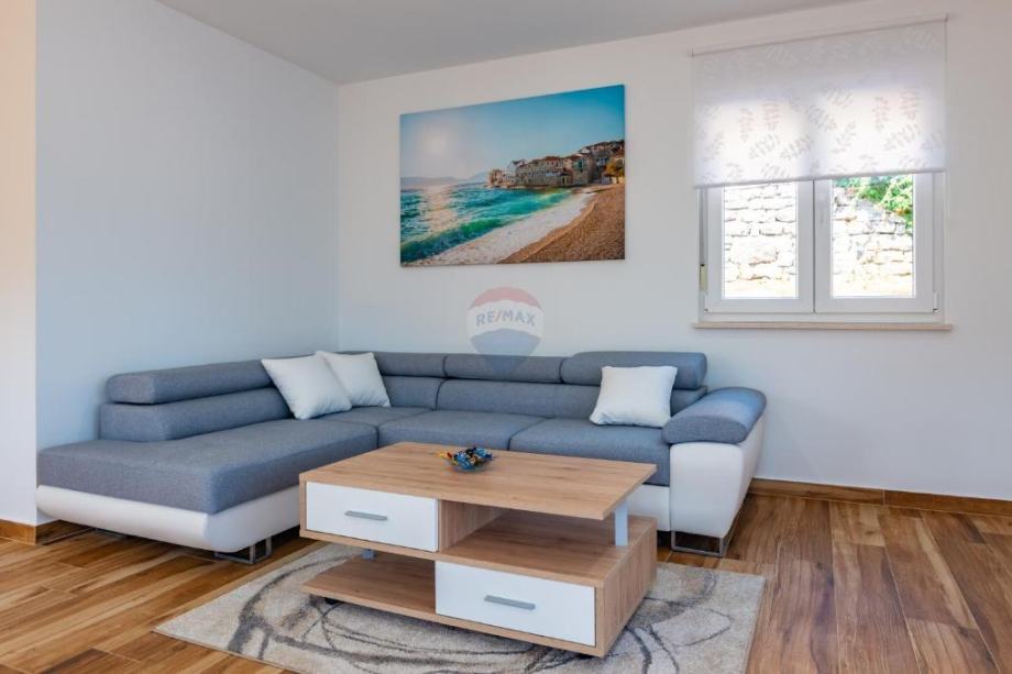U prizemlju se nalaze hodnik, kupaonica, te dnevni boravak otvorenog koncepta s kuhinjom i blagovaonicom. Iz ovog dijela izlazi se na
