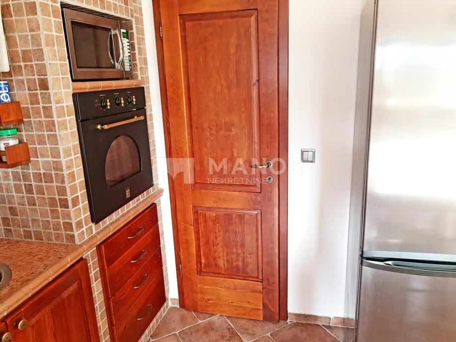 U prizemlju se nalazi kuhinja s blagovaonicom, ostava i toalet. Na prvome katu se smjestila jedna