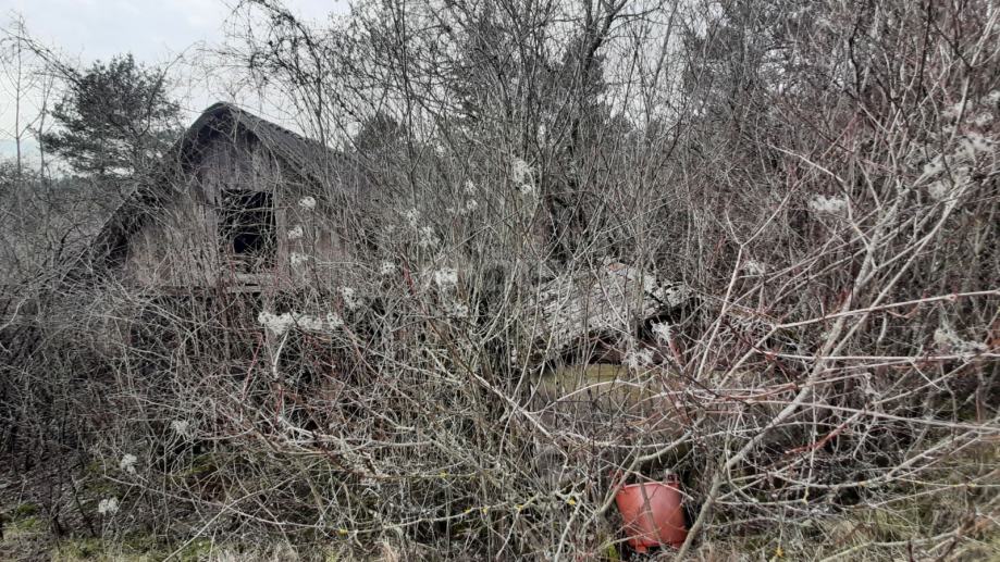 drvena kućica. Voda i struja odmah do terena, udaljenost do asfaltnog puta iznosi 10 m.