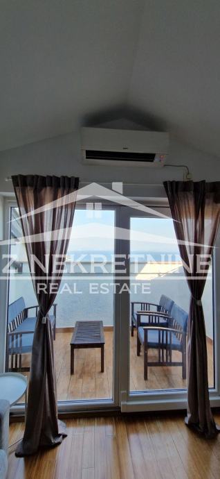 Dnevni boravak s kuhinjom i blagavaonom otvorenog koncepta s izlaskom na balkon s kojeg se pruža predivan pogled na Kvarner.