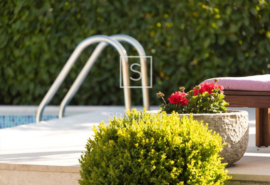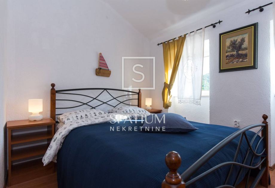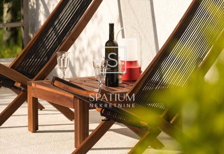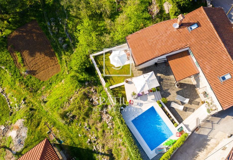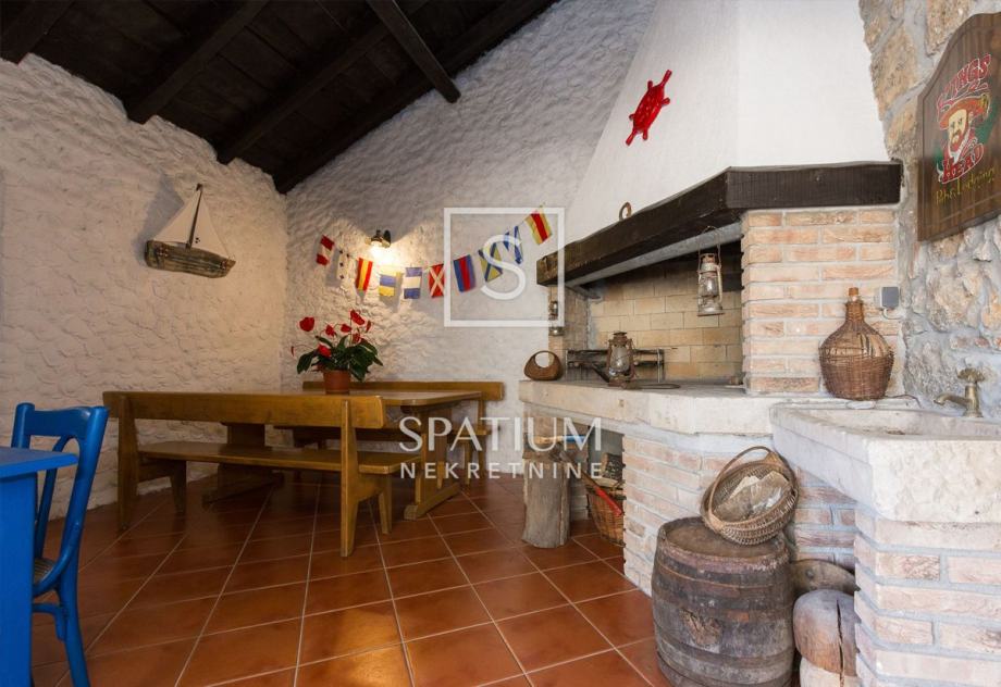 Sastoji se od prizemlja i kata. U prizemlju nalazimo veliki dnevni boravak s kuhinjom i blagovaonicom te kupaonicu dok su se na katu smjestile tri spavaće sobe. Na terasi se nalazi i dodatni prostor za druženje s ljetnom kuhinjom i kupaonicom. Na lijepo uređenoj i ograđenoj okućnici od 300m2 nalazi se i bazen sa sunčalištem.