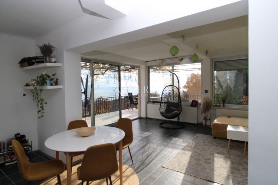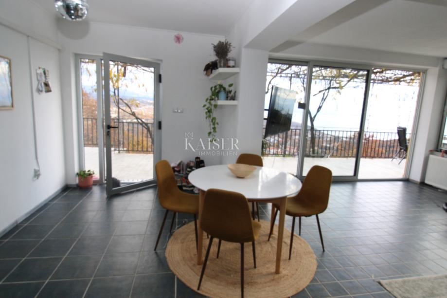 U bližoj okolici mjesta Rukavac ,Kaiser immobilie nudi ovaj lijepi dvosoban stan s dnevnim boravkom i velikom terasom ispred dnevnog boravka i spavaće sobe s spektakularnim pogledom na Rijeku i otoke. Stambena zgrada s ukupno 6 stanova je novije gradnje. Velike staklene stijene u stanu pružaju puno prirodne svijetlosti i otvoren pogled prema otocima Krku i Cresu te stvaraju dojam kontinuiranosti i povezanosti s okolišem .Uz stan dolazi i vanjska konoba kao i dva parkirna mjesta. Grijanje stana je na dizalicu topline i klima uređaj koji se nalazi u dnevnom boravku. Trgovina se nalazi na 5 minuta vožnje autom kao i obližnja autobusna stanica i osnovna škola Rukavac. Ostali važniji životni sadržaji su u mjestu Matulji udaljenom 10 tak minuta vožnje autom. Lokacija pruža potpuni relax i mir u prirodnom okruženju na nadmorskoj visini od cca 350 metara, kao i svježinu gorskog zraka koji struji s vrha Beljač, mirisa šume, te otvorenog pogleda na Kvarner, Rijeku i otoke.
