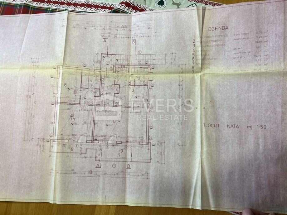 * Prvi kat: dvoetažni stan koji se prostire na potkrovlje, a sastoji se od hodnika, kuhinje, dnevnog boravka i kupaone površine 100 m2,