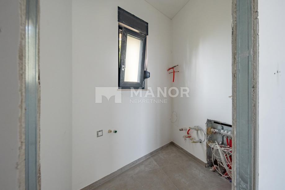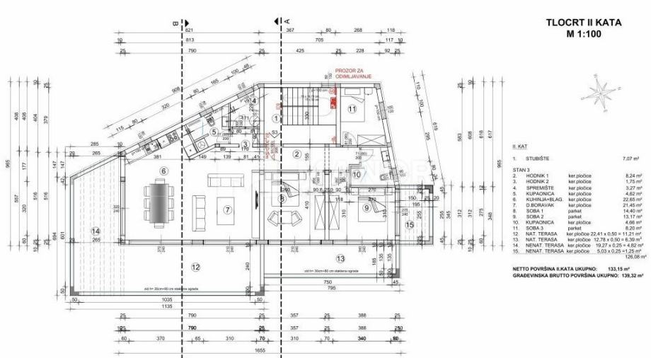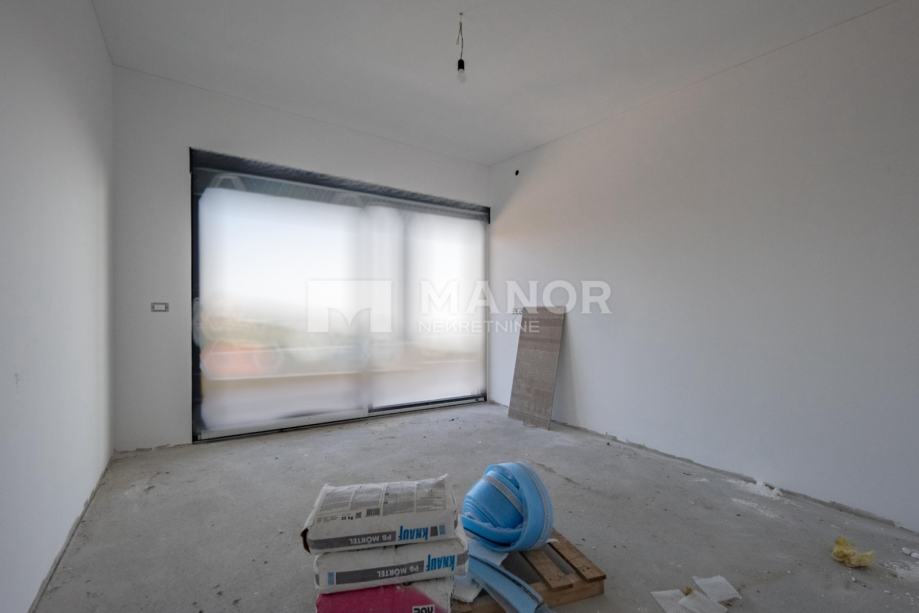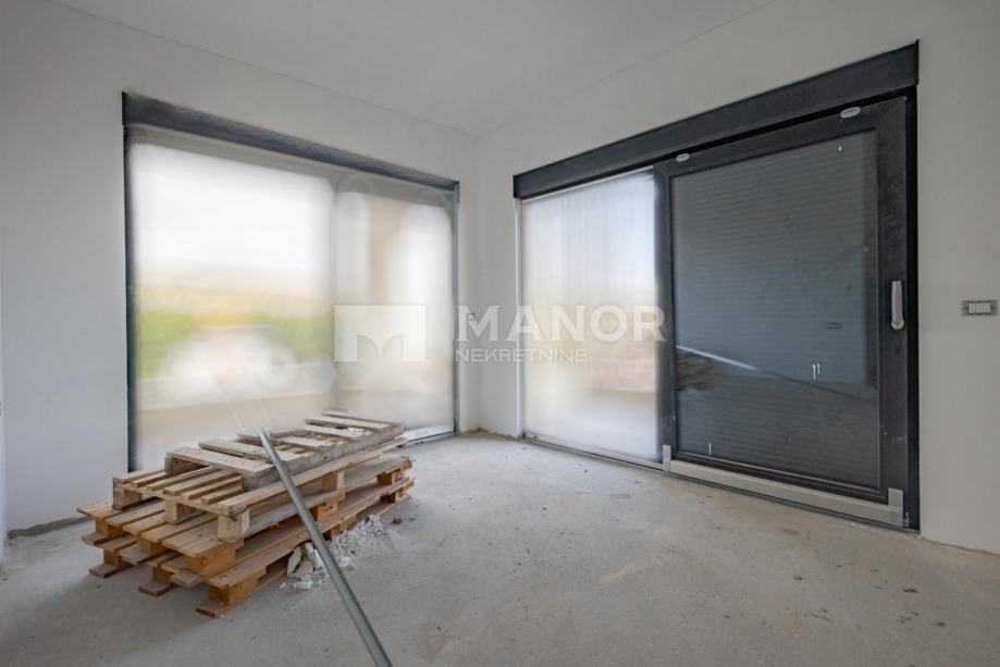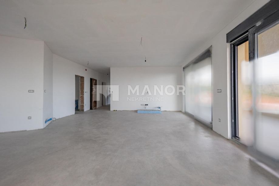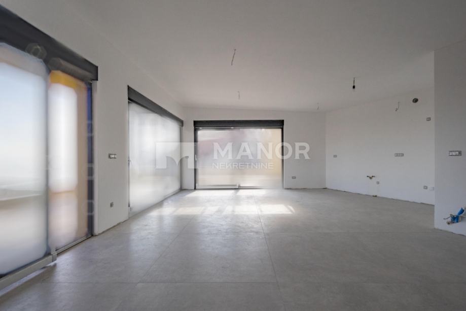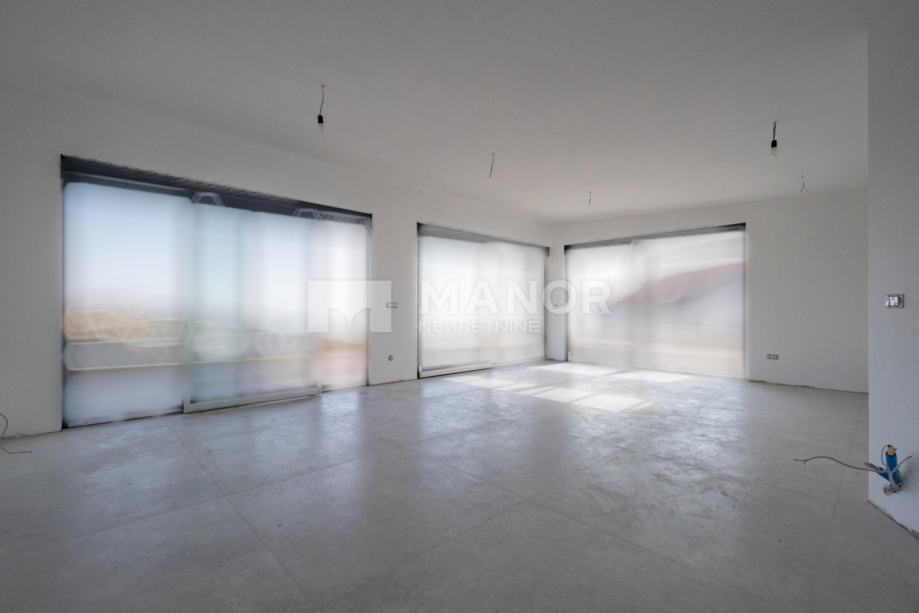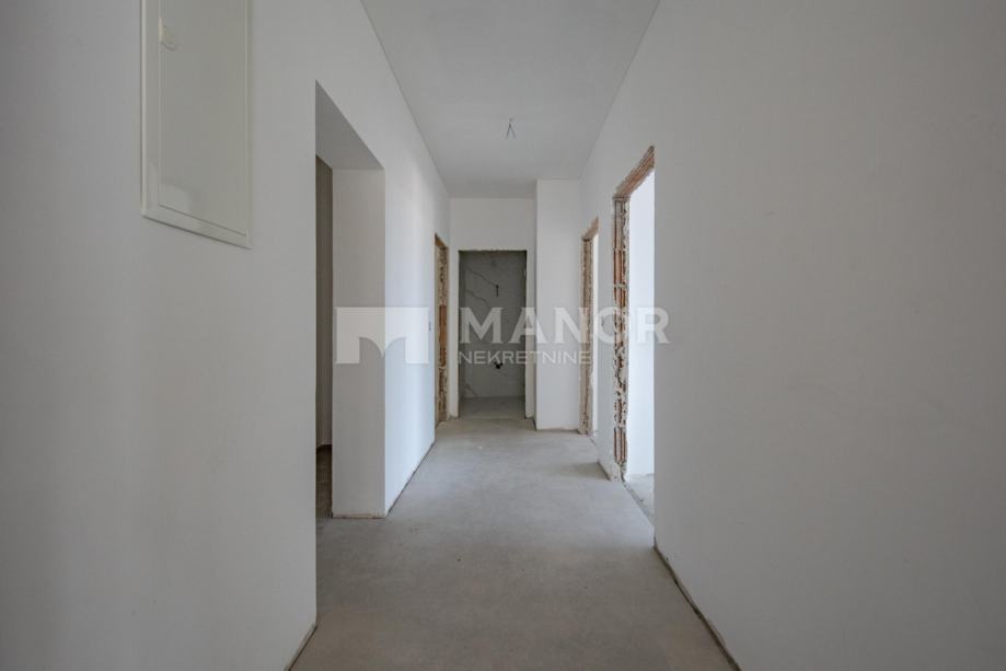 Predmetni stan nalazi se na drugom katu te se sastoji od ulaznog hodnika, open space kuhinju s blagovaonicom i dnevnim boravkom, terase od 60m2 koja obgrljuje jugo-istočni dio zgrade, tri spavaće sobe, dvije kupaonice te spremišta.