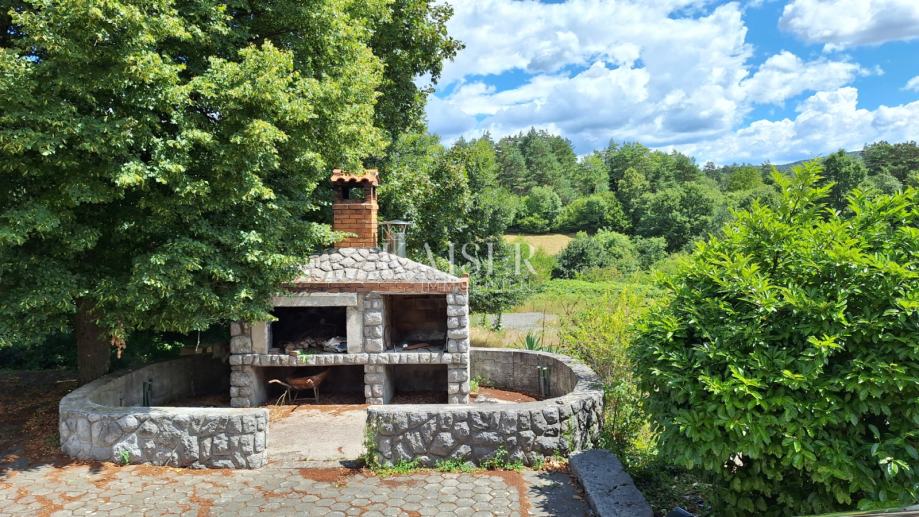 U okućnici poslovne zgrade nalazi se ograđeni prostor za plin, te kolektor od klima uređaja objekta. Zgrada ima dimnjak te je moguće visoko prizemlje grijati na drva. Kuhinja ima svoj dimnjak. Na vanjskoj terasi nalazi se kameni roštilj.