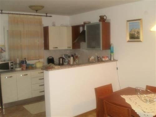 Velik trosoban stan sa dnevnim boravkom,sa dva balkona i nezastrtim pogledom na cijeli Kvarner,Učku i veliki dio zaleđa.Stanu,koji zauzima cijelu etažu,pripada potkrovlje od 31m2 odvojenog ulaza i većim dijelom već uređeno.Grijanje u stanu je centralno,na struju.Kućno dvorište je uređeno,sa popločanim parking prostorom na južnoj strani,a sa sjeverne strane pri završetku je mali zidani objekt sa drvarnicama-ostavama za sva tri stana.Ova lokacija na vrhu Matulja savršena je za obiteljski život u mirnom okruženju,sa pramenovima hrastove šume u neposrednoj blizini.