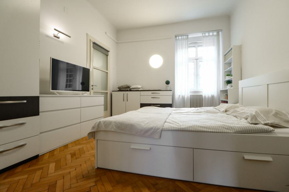 Iznajmljuje se odličan renoviran građanski stan od 108,71 m2 u neposrednoj blizini Hrvatskog narodnog kazališta i Trga Republike Hrvatske.