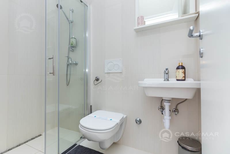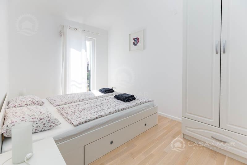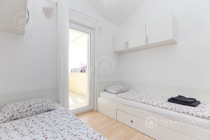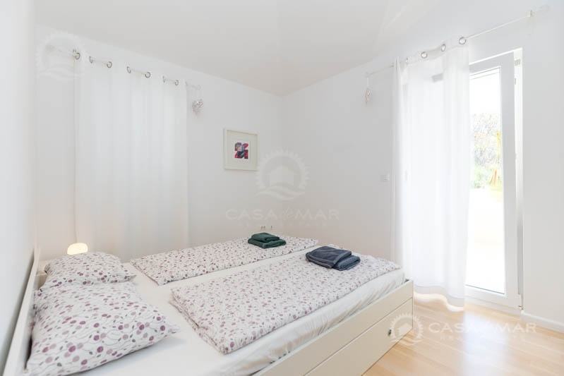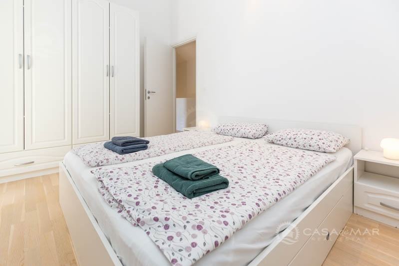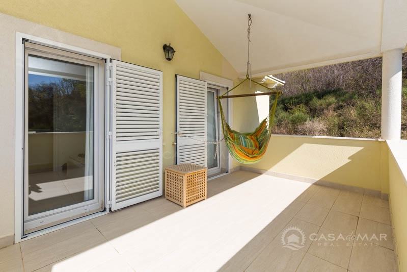 Na katu su tri prostrane spavaće sobe i dvije kupaonice. Jedna od spavaćih soba ima vlastitu kupaonicu, dok druge dvije imaju izlaz na balkon s kojeg se pruža pogled na more.