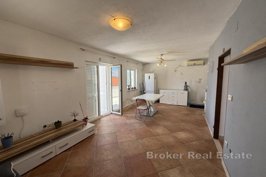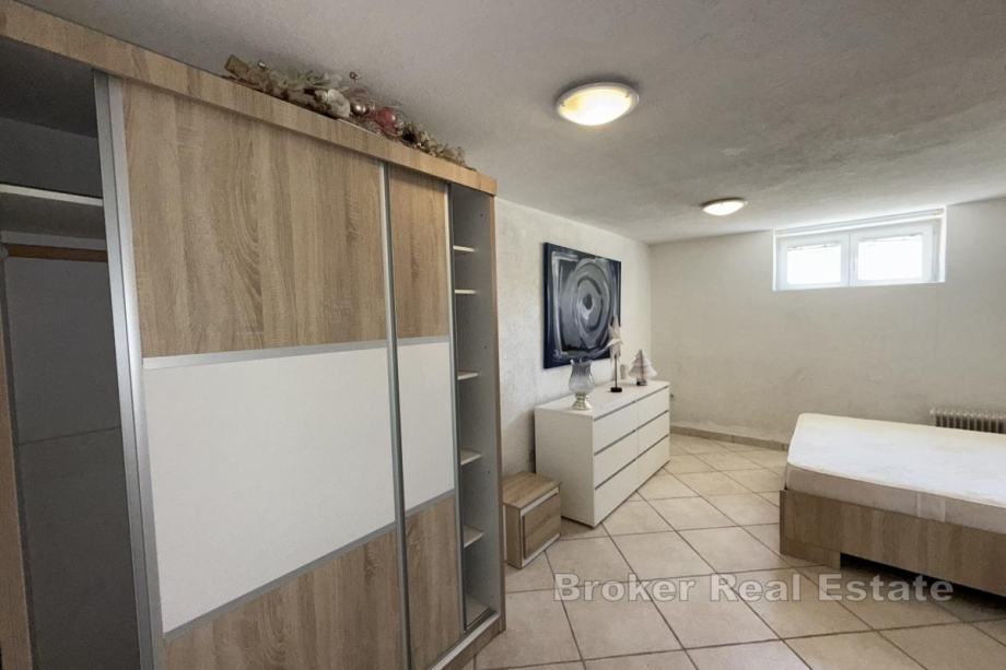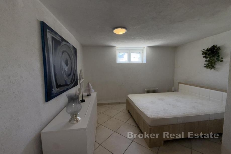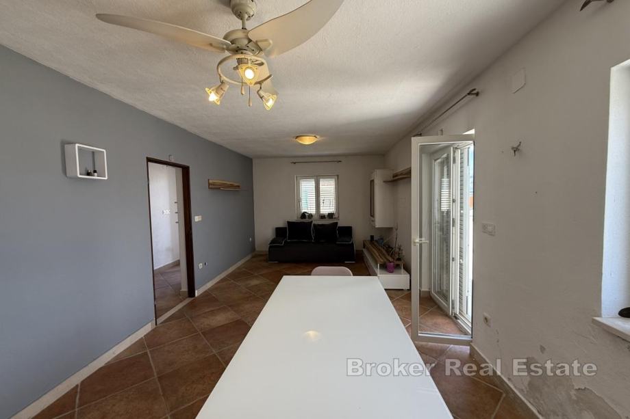 Na prvom katu se nalazi prostrani dvosobni stan koji dodatno uključuje kuhinju, dnevni boravak, blagovaonicu te kupaonicu.