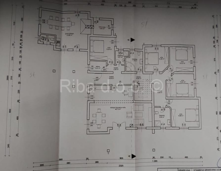 Prostranog "Open Space" prostora: Svijetla i prozračna kuhinja, blagovaonica i dnevni boravak u jednoj cjelini, iz kojeg se izlazi direktno na natkrivenu terasu i uređeni vrt.