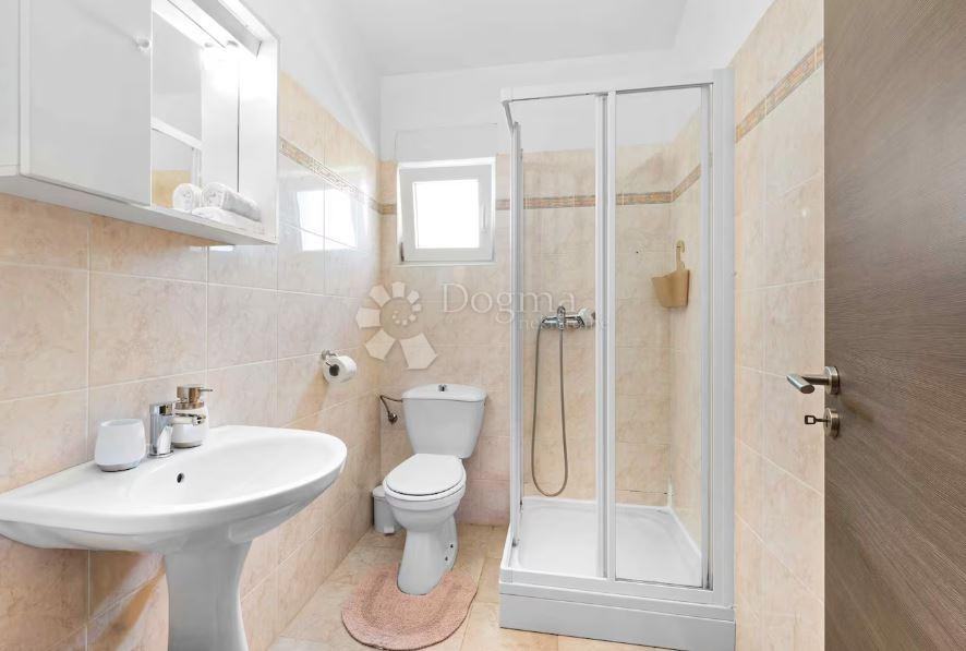 U uređenom dvorištu smješten je bazen sa sunčalištem, pažljivo uklopljen u popločeni eksterijer, kao i zona predviđena za roštilj i druženja. Vanjski prostor osmišljen je s naglaskom na hedonizam i boravak na svježem zraku. Prizemlje dodatno obuhvaća kupaonicu te funkcionalan raspored prostorija koji osigurava praktičnost i ugodan svakodnevni ritam.