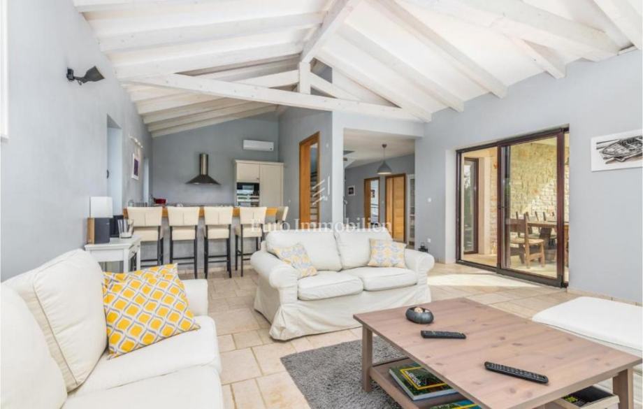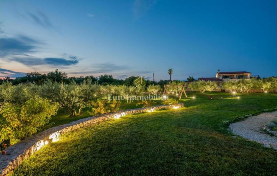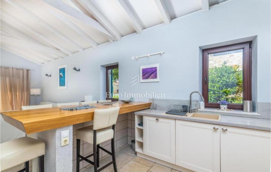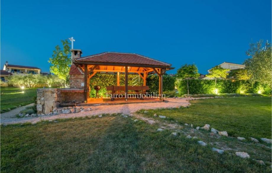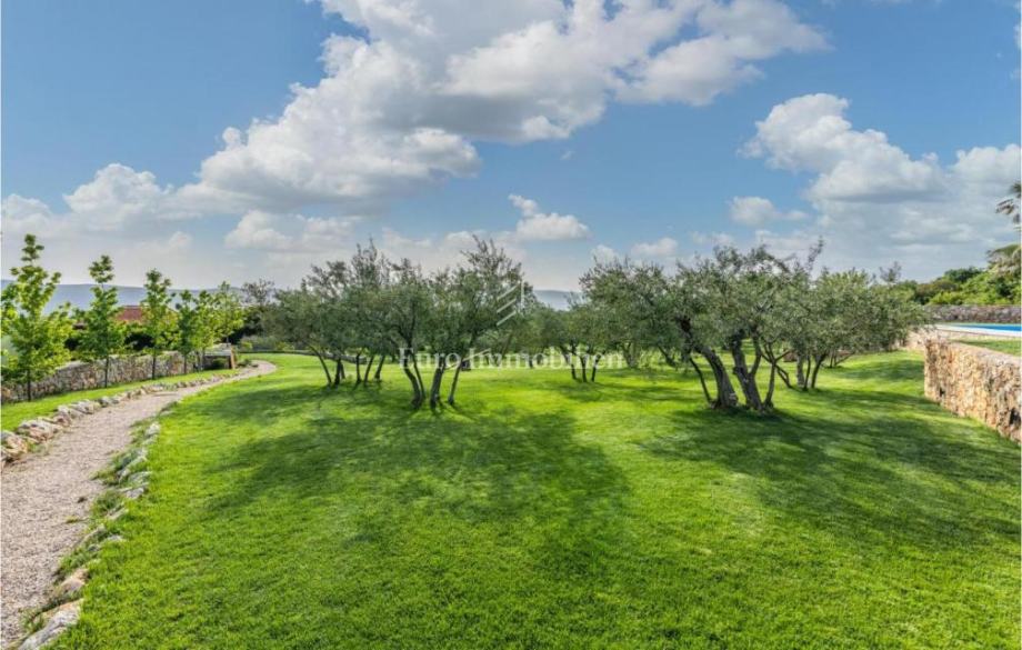 Otok Krk, okolica grada Krka. Prodaje se samostojeća mediteranska villa površine cca 154 m2, s prostranom okućnicom površine cca 700 m2. Kuća se sastoji od dvije etaže, prizemlja i kata, na kojima se nalazi prostrani dnevni boravak s kuhinjom i blagovaonom, četiri spavaće sobe, tri kupaonice, toalet te predivne terase. Kuća ima lijepo uređenu okućnicu s bazenom, sunčalištem i stablima masline.