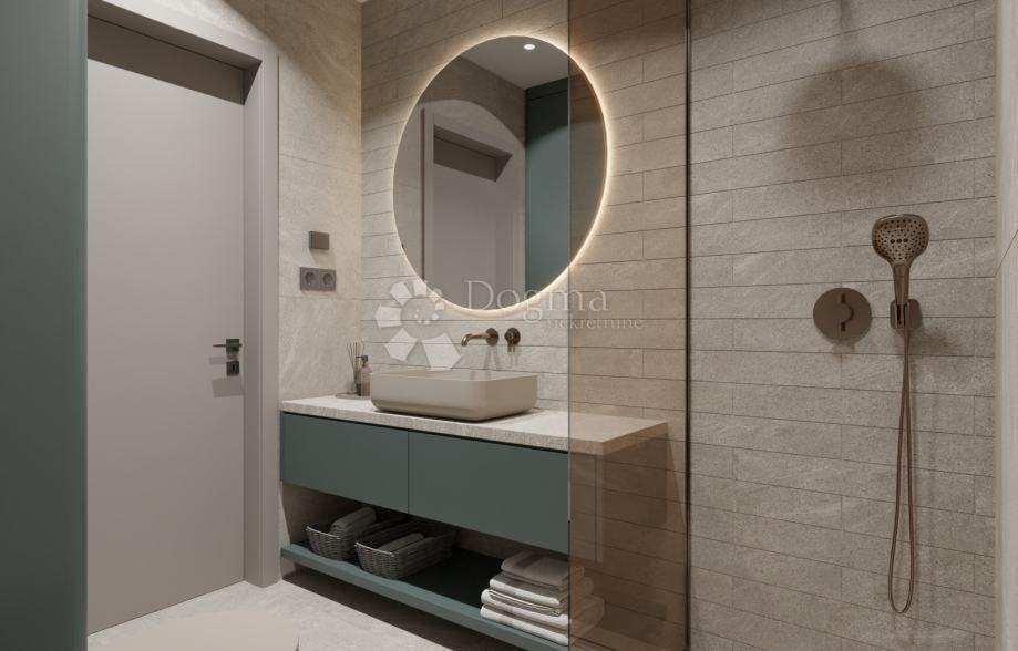 Opremljen podnim grijanjem, klimatizacijom, protuprovalnim vratima, električnim roletama i videoportafonom, ovaj stan ujedno je i sigurna i udobna investicija. Uz spremište i dva parkirna mjesta, život u njemu postaje jednostavan, a opet bogat. Dostupna je i opcija potpuno namještenog interijera – da sve bude spremno za useljenje od prvog dana.