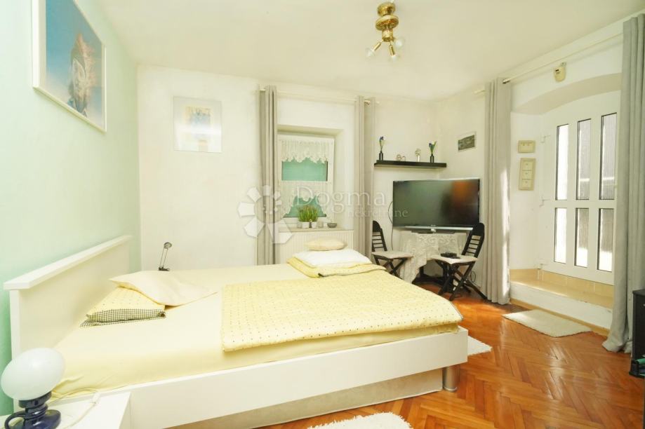 Na atraktivnoj, mirnoj lokaciji uz more, na parceli od cca 600 m², prodaje se kamena kuća ukupne stambene površine oko 100 m² raspoređena na tri etaže.