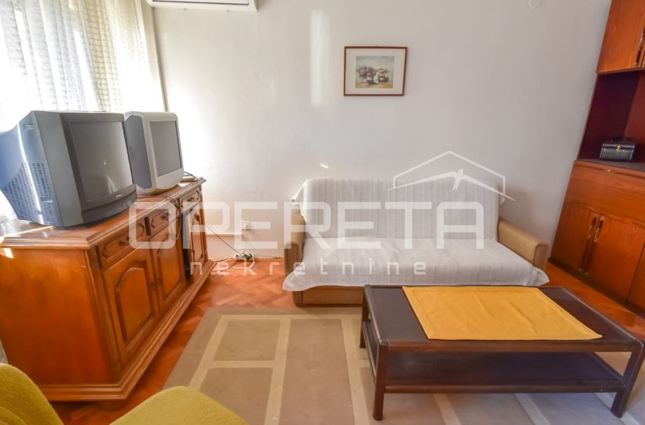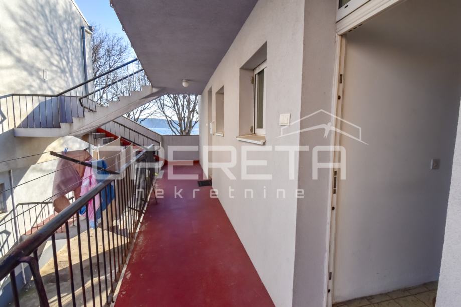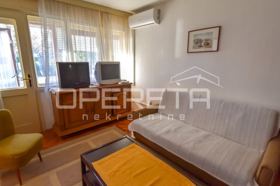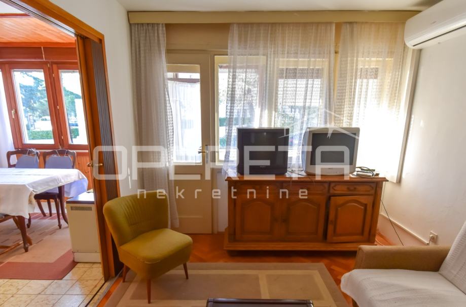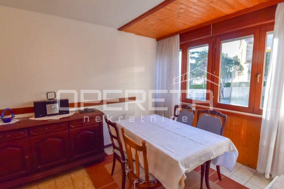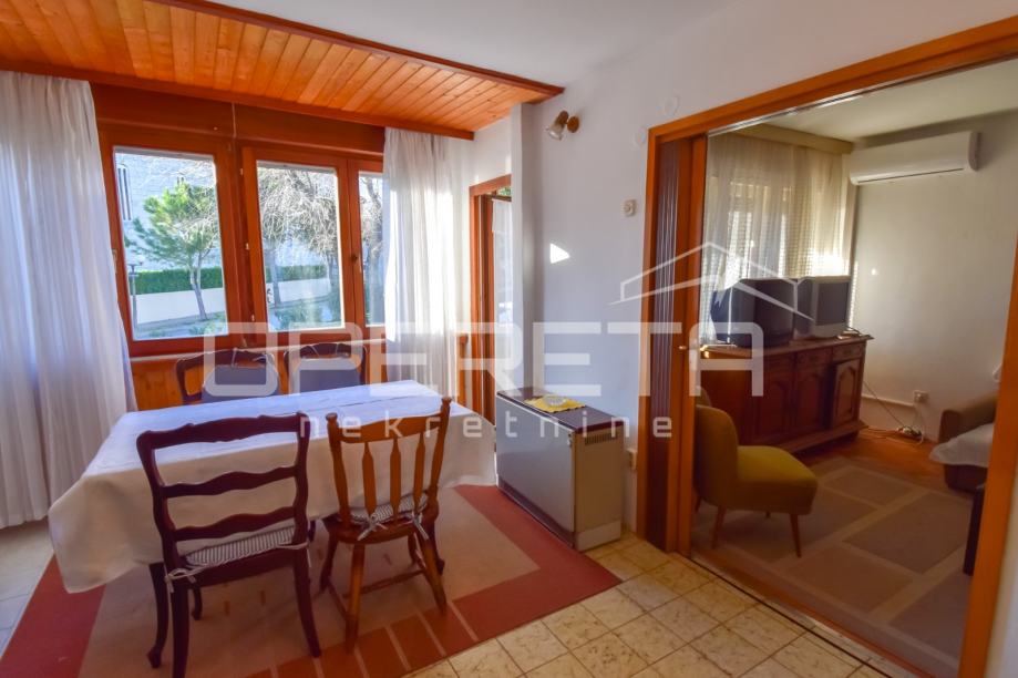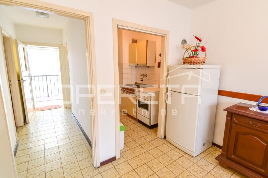 Nalazi se na prvom katu manje stambene zgrade, koja se sastoji od prizemlja i dva kata, a prostire se na 45,62 m². Sastoji se od predulaza, hodnika, kupaonice s toaletom, spavaće sobe, kuhinje, blagovaonice i dnevnog boravka, iz kojeg se izlazi na balkon s pogledom na more. Uz stan dolazi i drvarnica, idealna za dodatni prostor za pohranu.