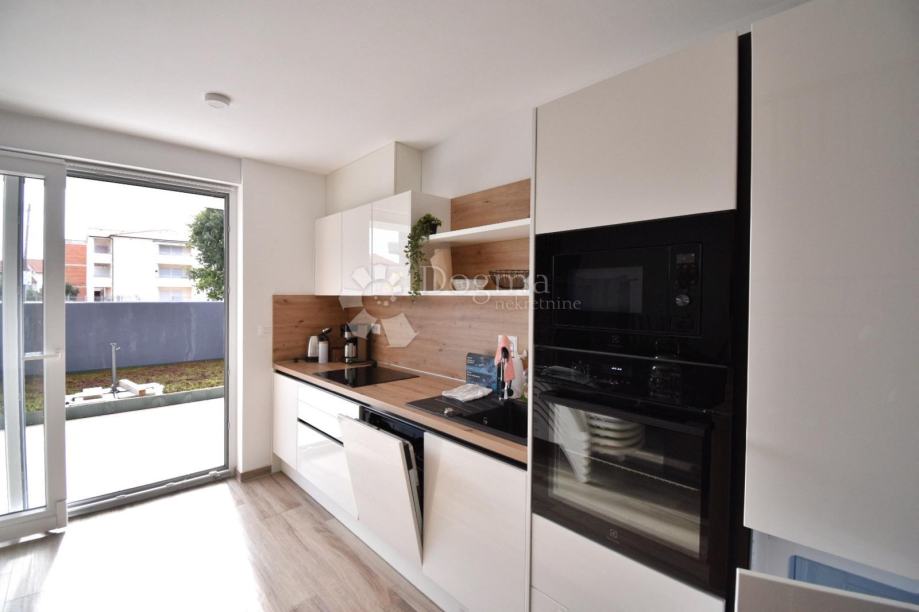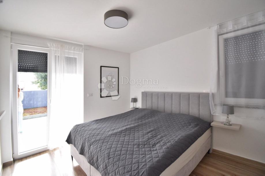 Vrt povrsine oko 100m2 sadrzi bazen, suncaliste i vanjski namjestaj. U vrtu su posadjene dekorativne biljke, a automatsko navodnjavanje olaksava odrzavanje.