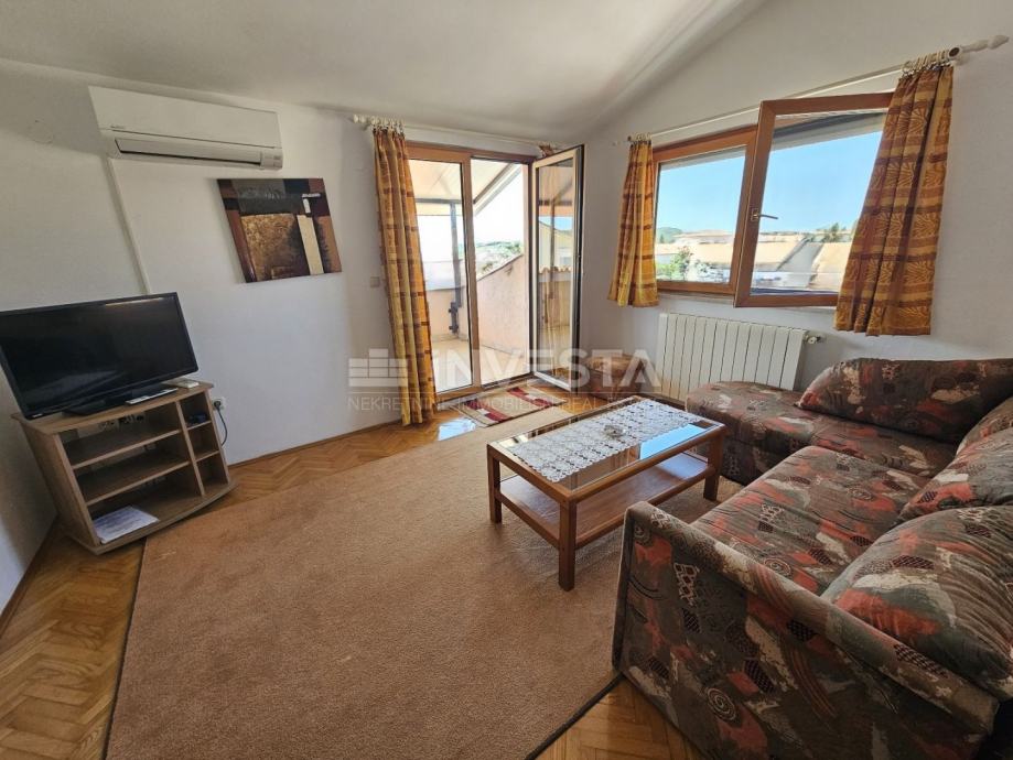 Mansarda: U mansardi se nalazi dnevni boravak, blagovaonica, kuhinja, dvije spavaće sobe, kupaonica i velika natkrivena terasa s pogledom na more. Ovaj prostor je idealan za opuštanje i uživanje u prekrasnim pogledima.