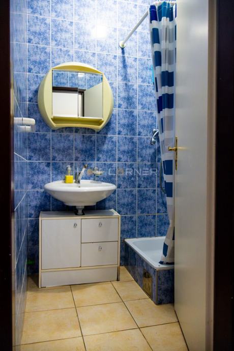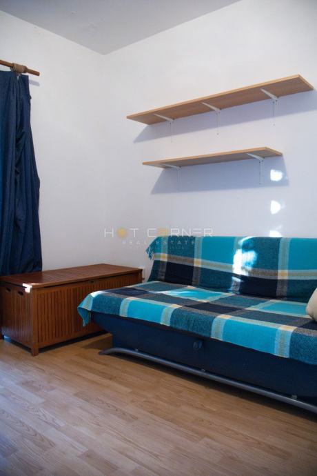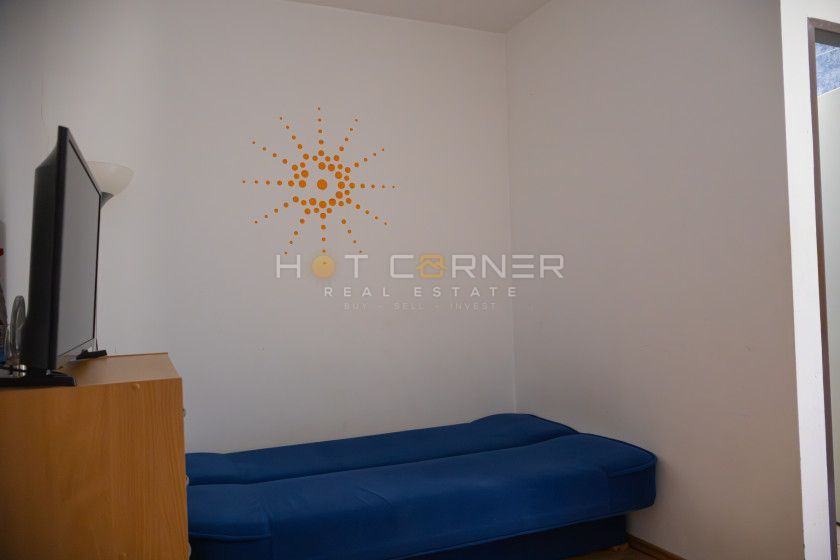 Na prodaju mali apartman površine 25,32 m2 sa lijepim i funkcionalnim rasporedom koji se sastoji od kupaonice, open spacea koji objedinjuje kuhinju, blagavaonu i dnevni boravak s kaučom na izvlačenje koji se može koristiti kao ležaj za 1-2 osobe. Apartman ima i zasebnu spavaću sobu s bračnim krevetom i dodatnim ležajem za još dvije osobe. Iz spavaće sobe izlazi se na mirnu lođu (5,76 m2), idealnu za opuštanje, s pogledom na zelenilo koje čini prirodnu sjenu. Ispred lođe nalazi se priroda i nema zgrada u blizini, već se kroz zelenilo može vidjeti more. Besplatan parking dostupan je u dvorištu zgrade uz apartman. Nekretnina je pogodna za odmor obitelji vlasnika a odlična je i za iznajmljivanje, uzimajući u obzir lokaciju, funkcionalan raspored, zajednički bazen.