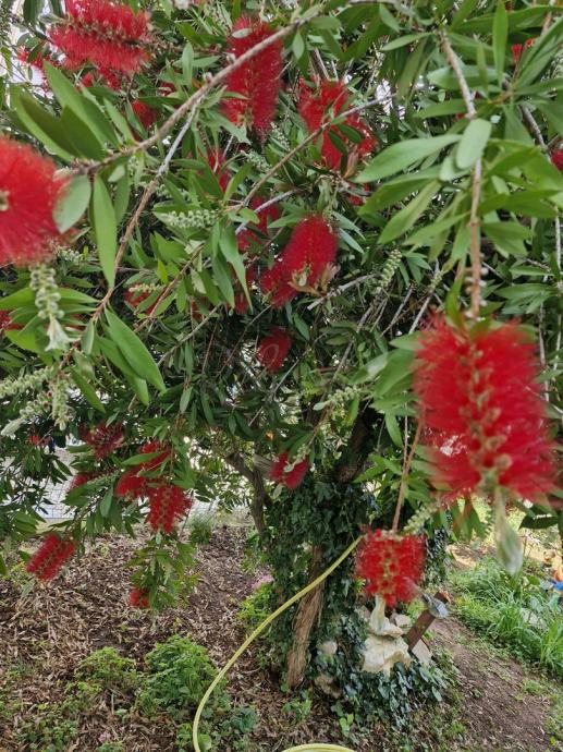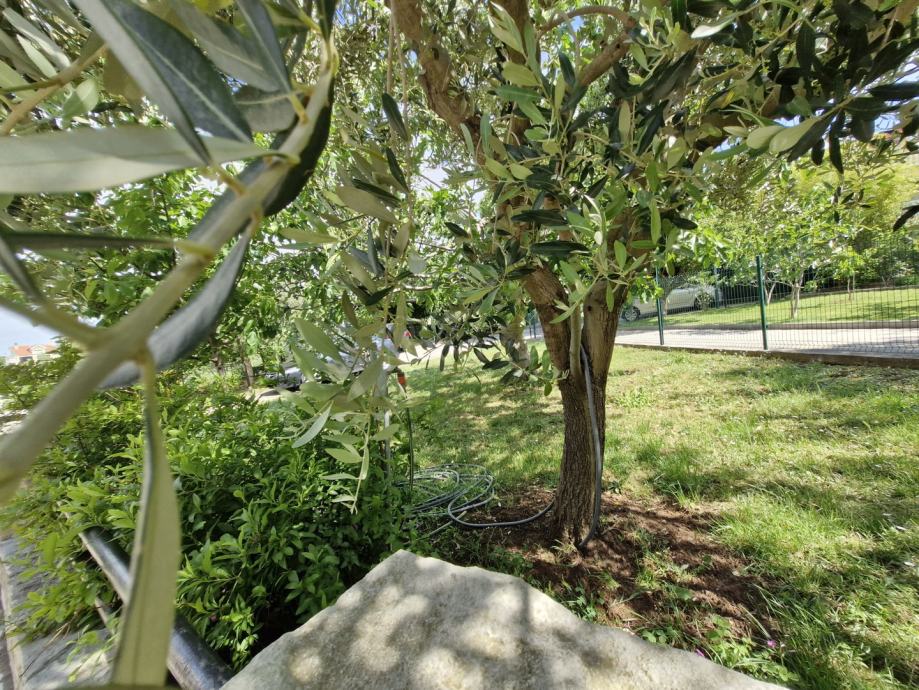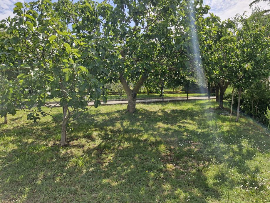 Okućnica je pravi raj s velikim brojem voćaka (smokve, višnje, limun, mandarina), što dodatno ukrašava raznoliko cvijeće, a dvorište je prostrano i uredno, s prostorom za parkiranje, dvije dodatne terase te drvenom kućicom koja služi kao alatnica. S obzirom na veličinu zemljišta, budući vlasnik ima mogućnost izgradnje bazena i drugih dodatnih sadržaja za uživanje.