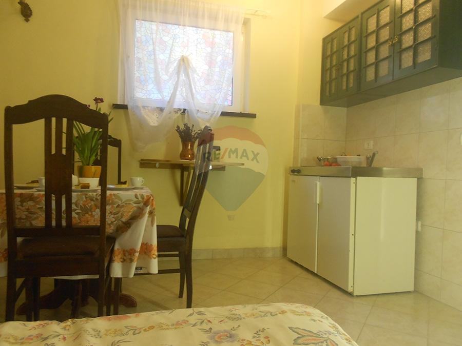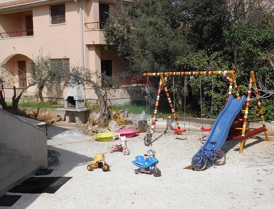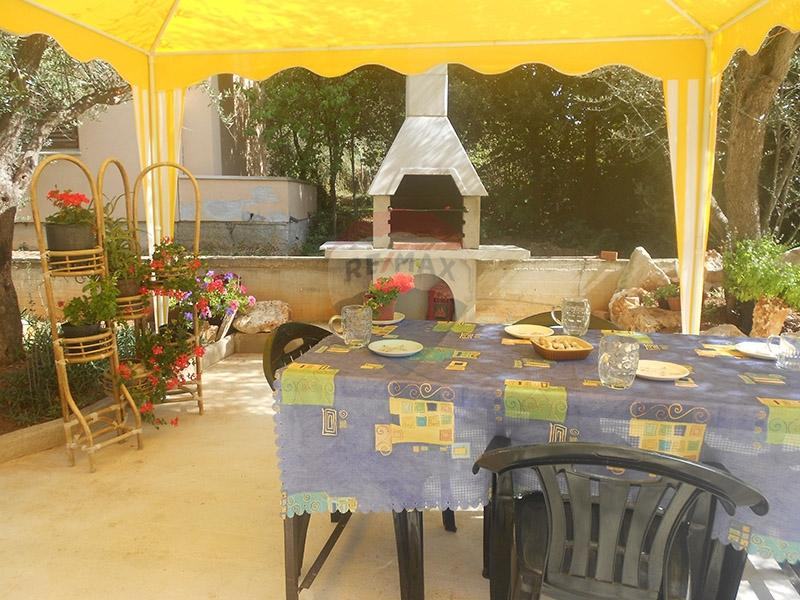 Ova kuća od 938m2 stambene površine i okučnice od 700m2 ima 8 apartmana i jedan veliki stan na cijeloj etaži sa predivno velikom natkrivenom terasom na kojoj se nalazi i ljetna kuhinja . Svaki apartman je sa vlastitom kupaonicom, opremljenom kuhinjom, -hladnjak, mikrovalna pećnica, klima-uređaj, i internetskom vezom. Svi apartmani na prvom katu imaju svoje balkone s prekrasnim pogledom na uvalu i more. U sklopu kuće nalazi se ogromna garaža u koju stanu 4 automobila. U dvorištu kuće također i 4 parkirna mjesta. Okućnica je u lijepom zelenilu i sa dječijim igralištem. Objekt je smješten blizu mora i orijentirana je na sunčanu stranu sa predivnim pogledom .Kuća se od kad je izgrađena , 2010 g. iznajmljuje i ima lijepu popunjenost u sezoni.