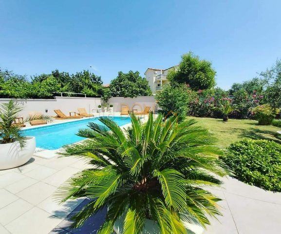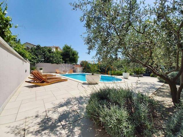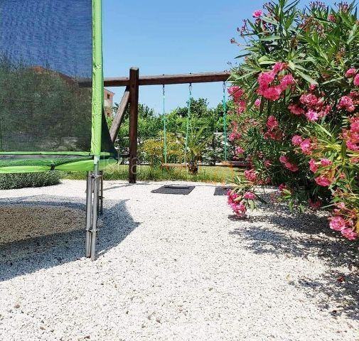 U vrtu se nalazi dječje igralište, bazen, prostrana terasa, mala kuhinja sa roštiljem , ostava, vanjski toalet i terasa.