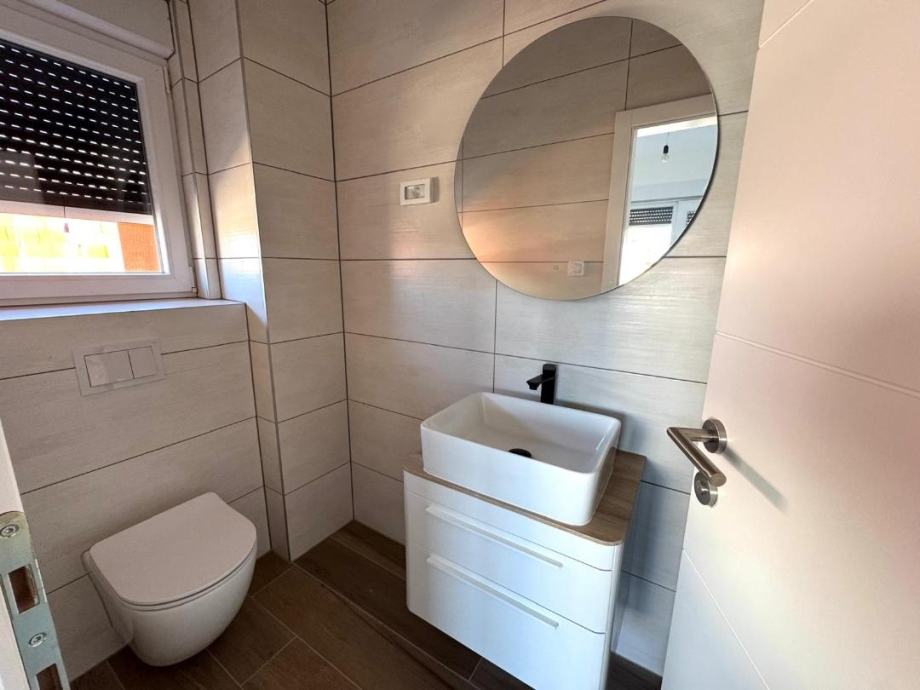 Tehničke karakteristike: kvalitetna stolarija, protuprovalna vrata, klima uređaji, podno grijanje.Kući pripada okućnica od 100 m2 i 2 parkirna mjesta. .Nekretnina Idealna za obitelj ili najam kao kuća za odmor.