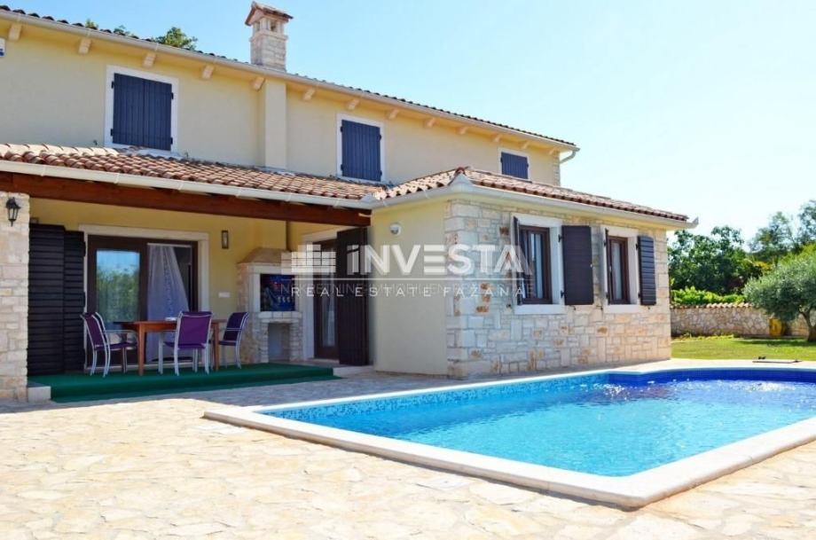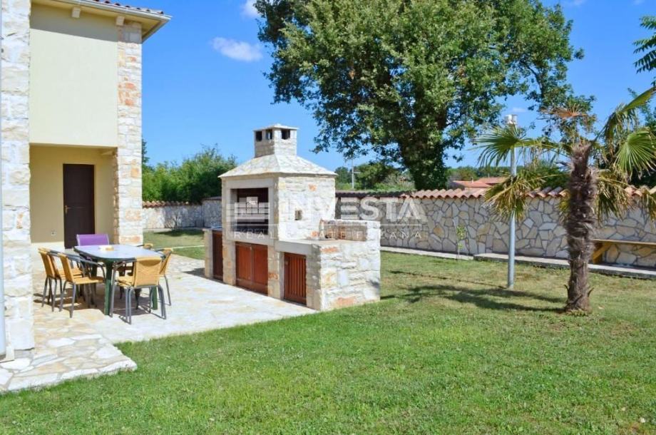 U sklopu lijepe i potpuno ograđene okućnice smjestio se bazen od 30 m2 sa sunčalištem, ljetna kuhinja sa stolom za objedovanje, kamin sa mjestom za druženje, vrtna kućica te parking za dva automobila.