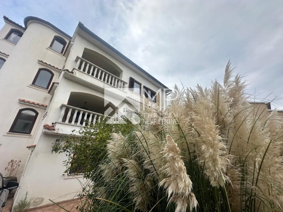 Na prizemnoj etaži je četverosoban stan, a na prvom i drugom katu po jedan trosoban stan. Prizemlje je površine 158,47 m2 gdje se nalazi ulazni dio za stubištem, 4 spavaće sobe, dvije kupaonice, dnevni boravak s kuhinjom i blagovaonicom, zatim kotlovnica i spremište. Prvi kat ima površinu od 131,50 m2, a sastoji se od hodnika, dnevnog boravka s kuhinjom i blagovaonicom s izlazom na natkrivenu terasu, tri spavaće sobe i dvije kupaonice, te stubište za kat. Drugi kat je identičan (131,50 m2). Na zadnjem katu, u potkrovlju, nalazi se hodnik, kupaonica, manje spremište, te otvorena terasa s koje se pruža prekrasan otvoren pogled na more i otoke. Površina potkrovlja iznosi 37,74 m2.