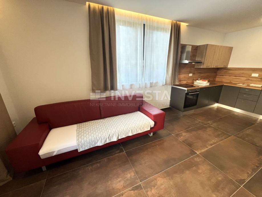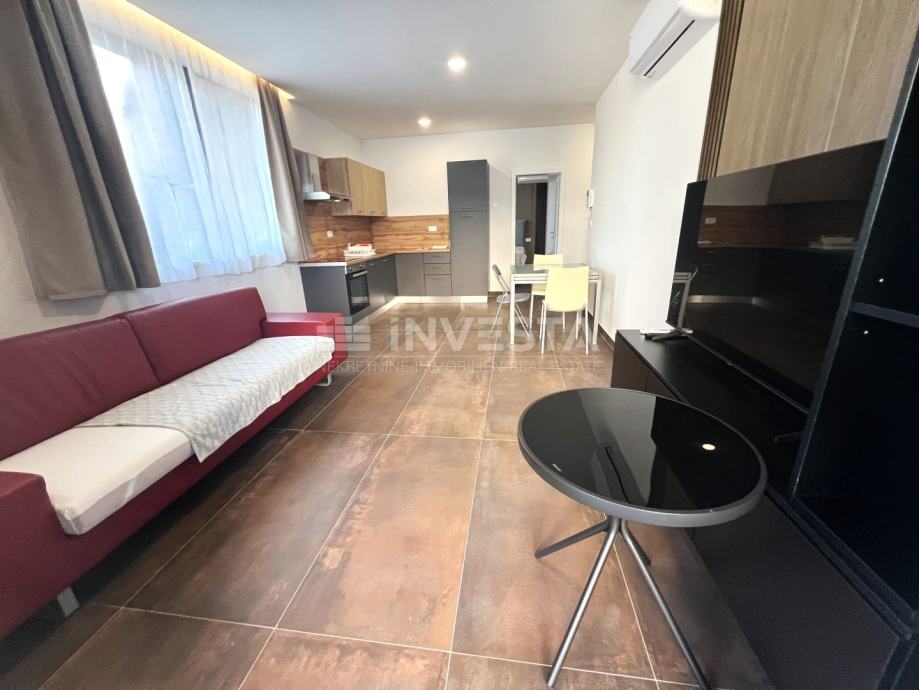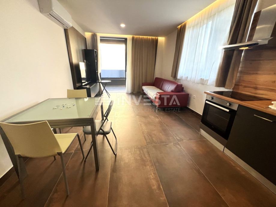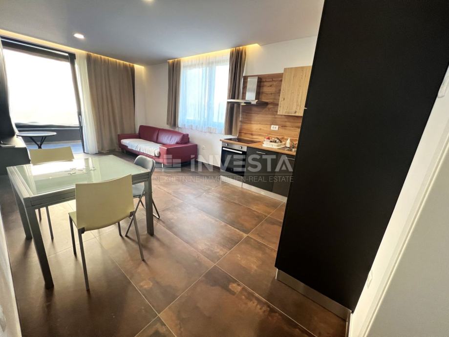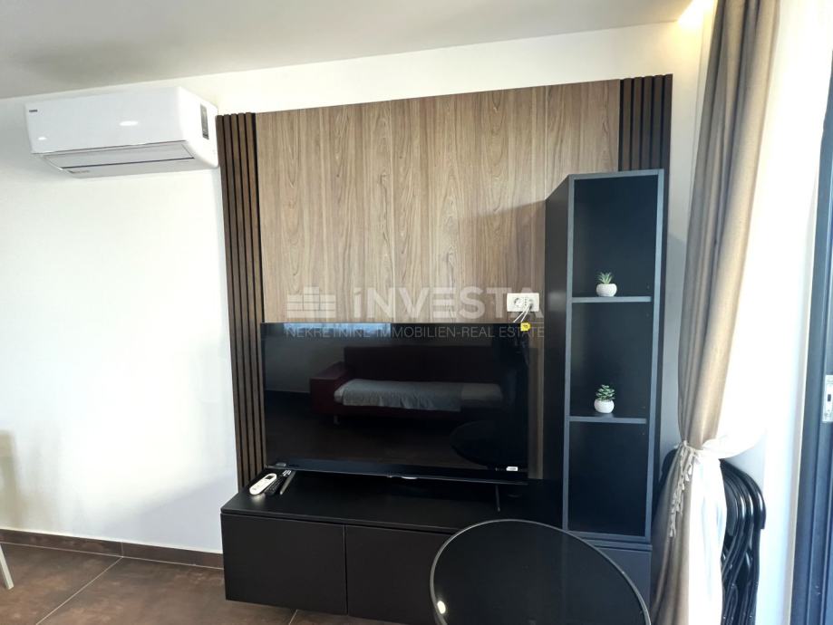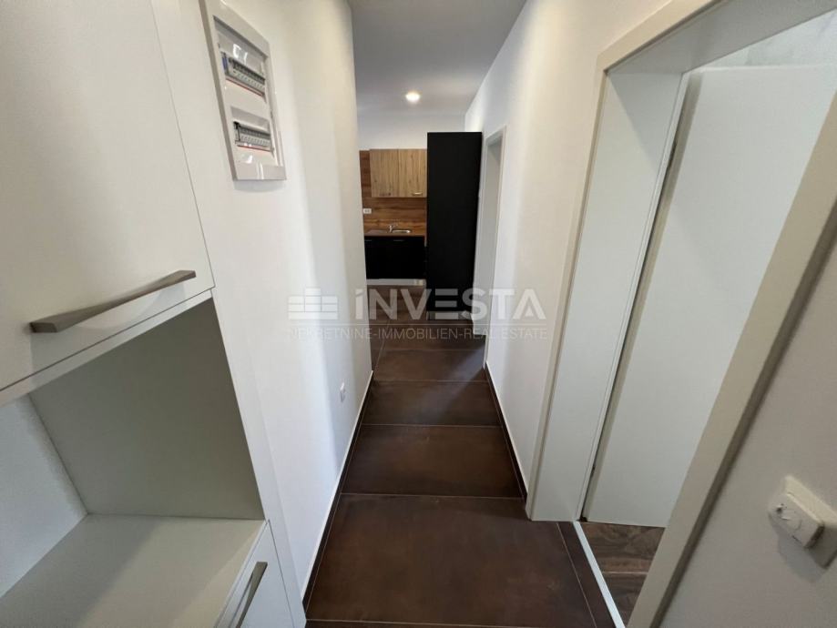 Stan je smješten na prvome katu stambene zgrade u atraktivnoj četvrti Medulina, udaljenost od mora i prekrasnih plaža iznosi samo 100 m. Ukupne površine stana iznosi 54 m², te se sastoji od ulaznog hodnika, kupatila, jedne spavaće sobe, te open space dnevnog dijela s kuhinjom i blagovaonicom, s izlazom na prostranu terasu. U vlasništvu stana je vanjsko parkirno mjesto. Stan je moderno opremljen stiliziranom kuhinjom. Kupaonica je opremljena Walk-in tuš s grijanjem poda. Grijanje i hlađenje je u svim prostorijama osigurano klimom, te je postavljeno grijanje poda u kupaoni.