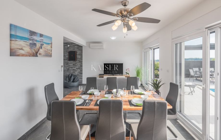 Kaiser immobilien posreduje u prodaji luksuzne kuće na jugu Istre, u mjestu Medulin. Kuća ima dva apartmana i predivan otvoreni pogled na more, te se nalazi samo 150m od prekrasnih plaža.