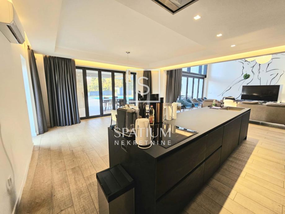 MEDULIN – u ponudi imamo samostojeću modernu vilu ukupne unutarnje površine cca 400 m², smještenu na uređenoj i ograđenoj parceli površine 910 m², u mirnom dijelu Medulina, nedaleko mora i svih potrebnih sadržaja.