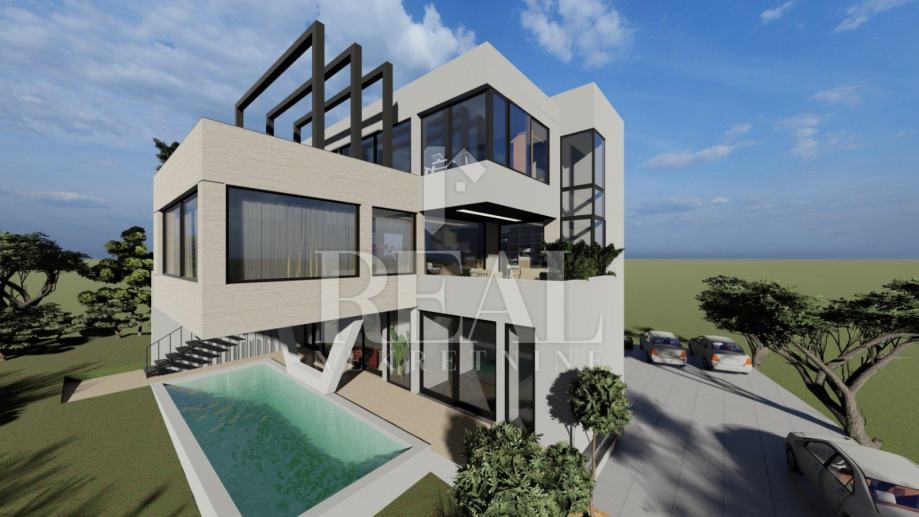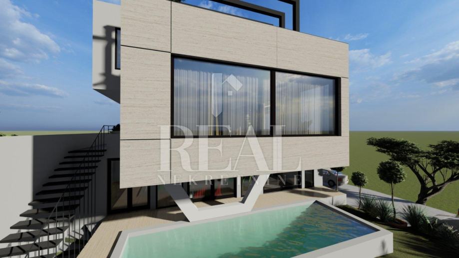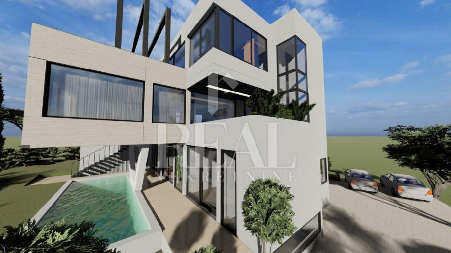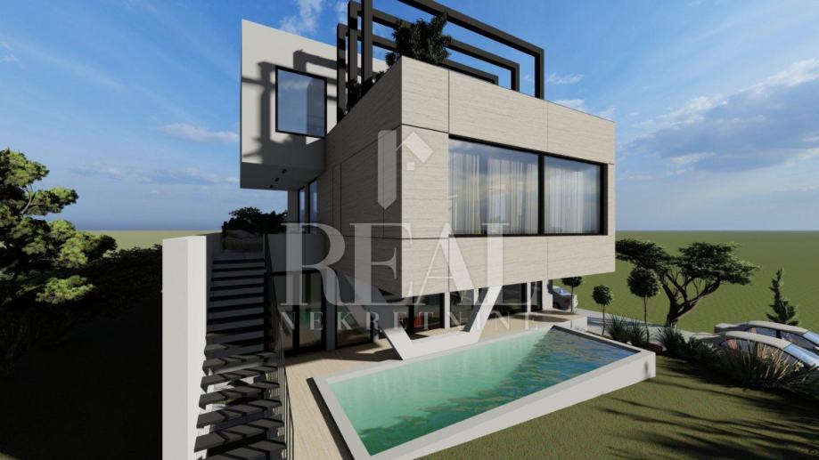 Suterena koji je zamišljen kao prostor za druženje sa biljarom, kuhinjom, ostavom i kotlovnicom, prizemlja gdje su tri velike spavaće sobe, svaka sa vlastitom kupaonicom i izlazom na natkrivenu terasu i bazen. Prvog kata open space dnevni boravak sa kuhinjom i blagavaonicom koji je kompletno ostakljen te pruža predivan pogled na more i terasu, te wc. Povezanost je moguća putem panoramskog lifta, ili unutarnjim i vanjskim stepeništem koji vode do drugog kata gdje se nalazi teretana, jacuzzi i kupaonica.Bit će opremljena vrhunskim materijalima,solarnim panelima koji proizvode do 17kw struje za grijanje i toplu vodu, dvije dizalice topline, podno grijanje, te klimatizacijom kroz cijelu nekretninu.