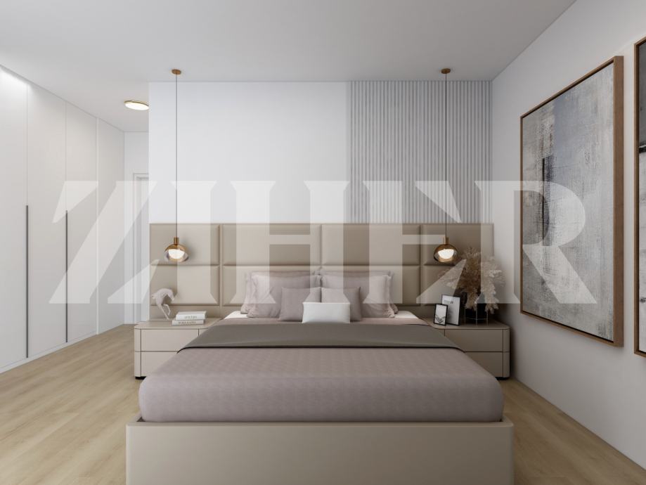 Vrhunska oprema, prvoklasni troslojni hrastov parket, prvoklasne talijanske keramičke pločice većih dimenzija, podno grijanje u cijelom stanu preko dizalice topline, sve sobe su klimatizirane (dnevni boravak isve spavaće sobe).