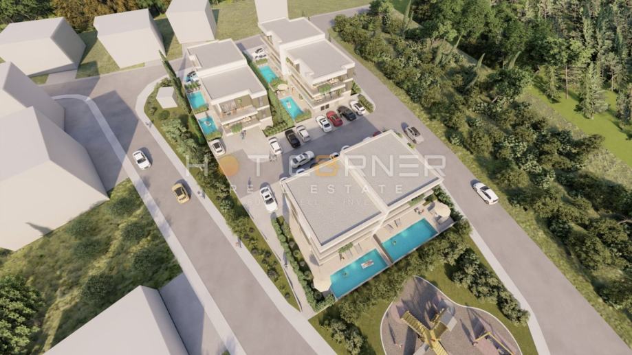 Izuzetno dobra lokacija, u okolini se nalaze privatne kuće i svi potrebni sadržaji (trgovine, javni prijevoz, plaža).