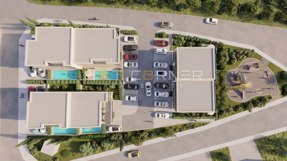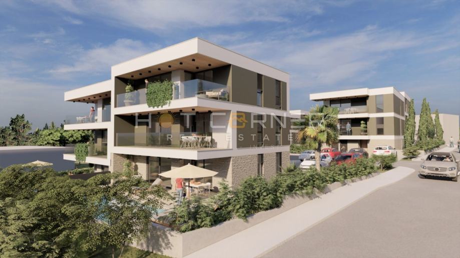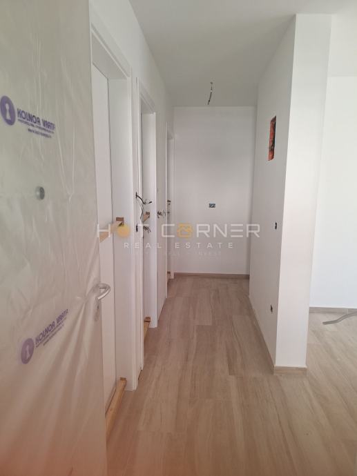 Stan je površine 92,92 m2 s dva parkirna mjesta, 2 vrta, 2 spavaće sobe, jednom kupaonicom, jednim toaletom + vešeraj, dnevnim boravkom, kuhinjom i blagovaonom te terasom., a raspolagat će ugrađenim klima uređajem. Kvalitetni gradnja i završni materijali, a svi stanovi bit će uzavršeni do kraja 2023. godine.