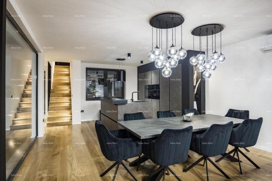 Vila se sastoji od 4 dvokrevetne sobe i 5 kupaonica. Odiše elegancijom i modernim stilom. Otvoreni dnevni boravak, blagovaonica i potpuno opremljena kuhinja nalaze se u prizemlju.