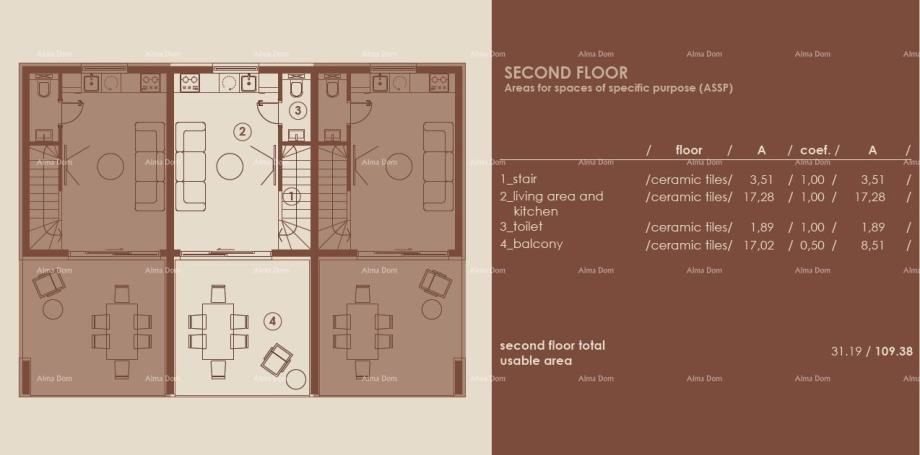 Apartman 2 površine 109.38 m2 uključuje prizemlje, 1.kat i 2.kat.