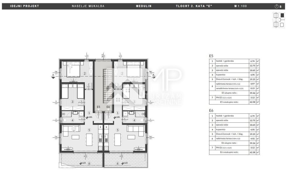 Medulin, Mukalba, stan na II. katu, namješteno, 62m2 (prodaja)