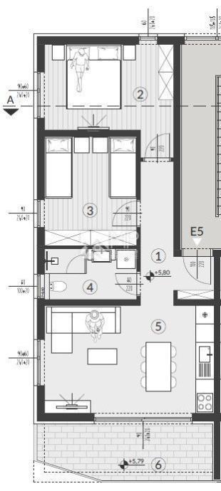 Na prodaju je stan na drugom katu oznake "E5" koji se sastojati od: