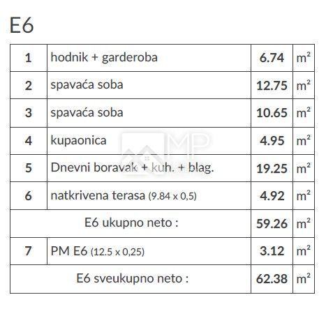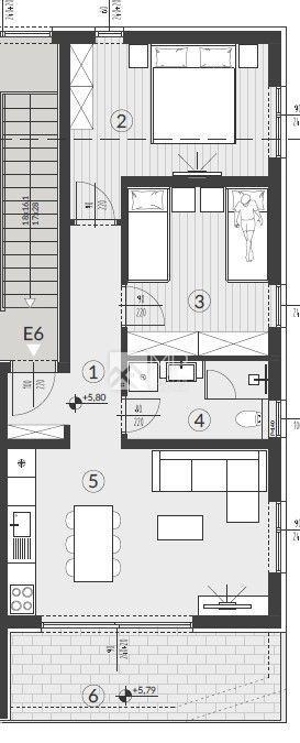 Na prodaju je stan na drugom katu oznake "E6" koji se sastojati od: